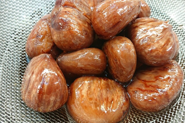 渋皮付の栗をじっくりにこんで甘露煮に仕上がっています。